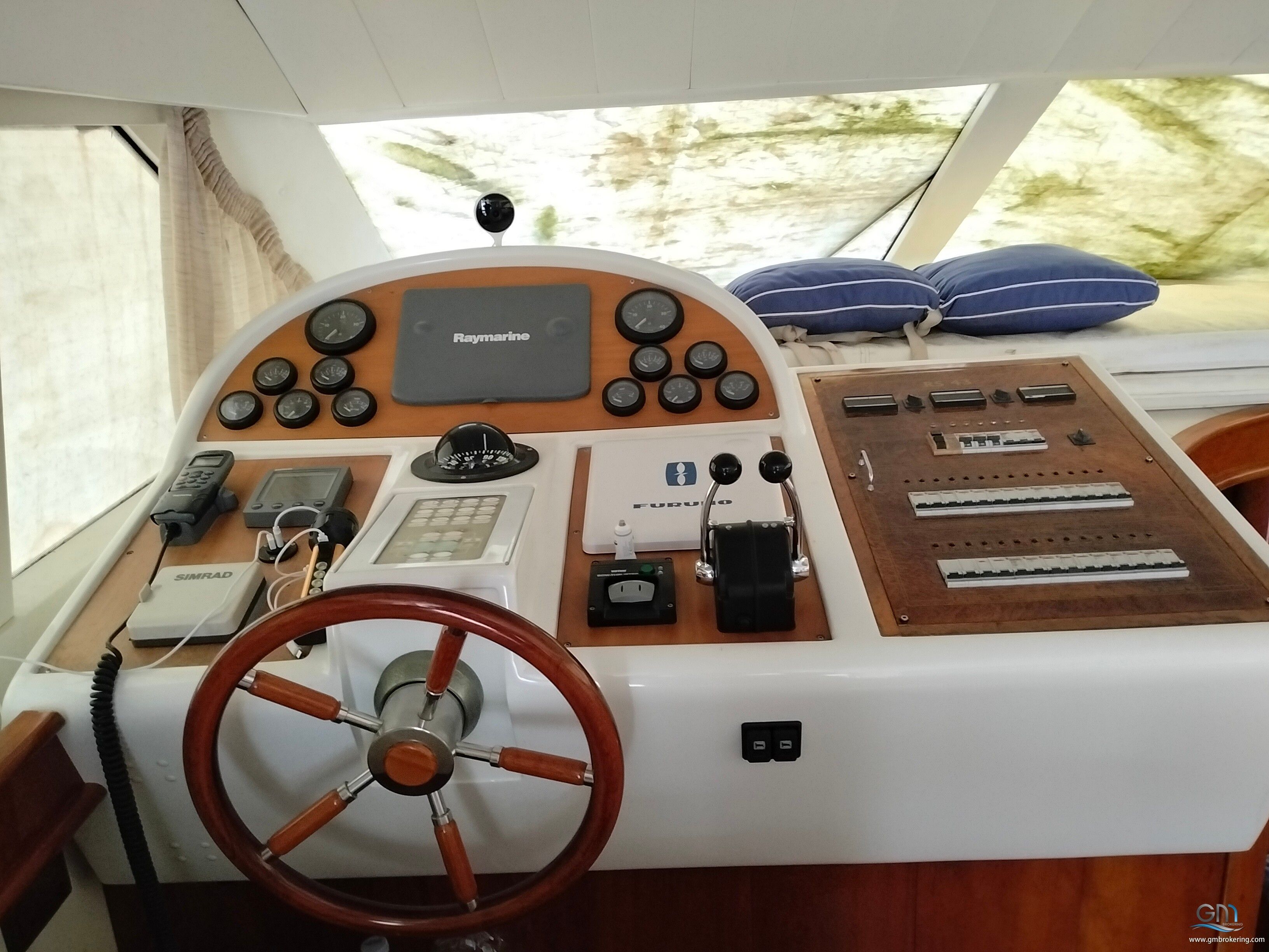 Il flybridge, spazioso e ben organizzato, offre una postazione di guida supplementare e un’ampia area living all’aperto, ideale per godere appieno della navigazione, del sole e dei momenti conviviali all’ancora, aumentando comfort e vivibilità a bordo.