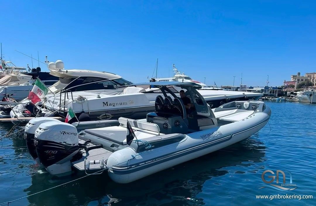 Il Doviboat Porsche Hurricane GT10RS è un gommone ad alte prestazioni del 2025 (lunghezza 12,40 m, larghezza 4,10 m) progettato per la velocità e il comfort, spesso motorizzato con doppi Mercury Verado 400 Racing. Offre ampi spazi per i passeggeri, inclusa una doppia zona di seduta, ed è dotato di comfort come teak, frigo, doccetta e sistema audio, posizionandosi come una soluzione di lusso e sportiva.
