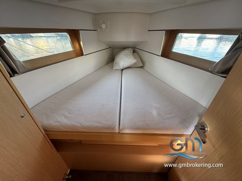 Versione 3 cabine accoglienti con letto matrimoniale, bagno separato con wc a pompa manuale e doccia, divano angolare a L, salone spazioso con design inclinato per una maggiore abitabilità e una lunga galleria, tavolo regolabile e pieghevole in ambo i lati.